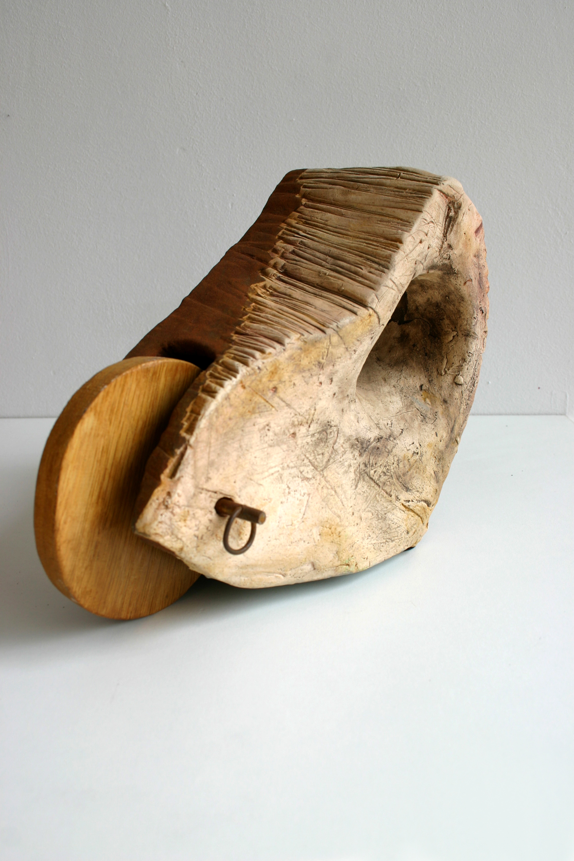 Dit mobile object bestaat uit diverse materialen als keramiek, hout en ijzer. Je kan het object al rollend verplaatsen.