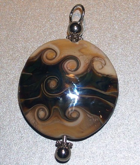 Angela Lokhorst, 38 jaar. Zij maakt sieraden van zilver, goud en glas. Het liefst werk zij met zilver, edelsmeden. Twee jaar geleden is zij begonnen met het maken van glaskralen. Een assortiment aan kettingen, hangers en armbanden gecombineerd met prachtige ringen, vormen een lust voor het oog.
