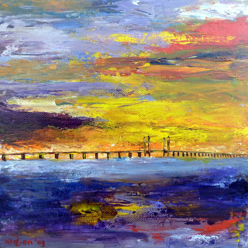 Rood Oranje Blauw Acryl Realistisch Zeegezicht