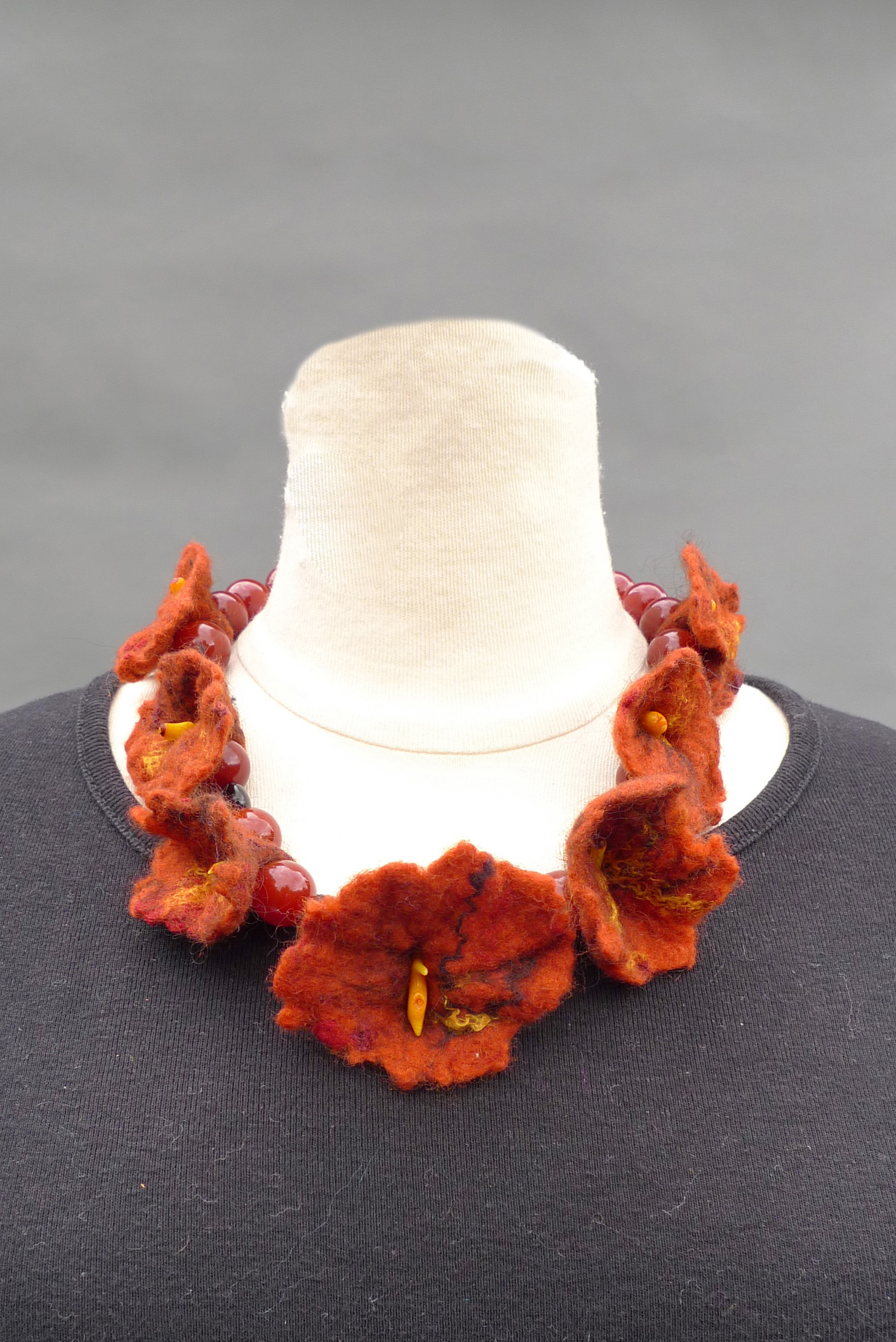 Bloemen Zijde Bloem Vilt Zilver Koraal Sieraad Sieraden Vilten Meteoriet Halfedelsteen Karneool Cornalijn