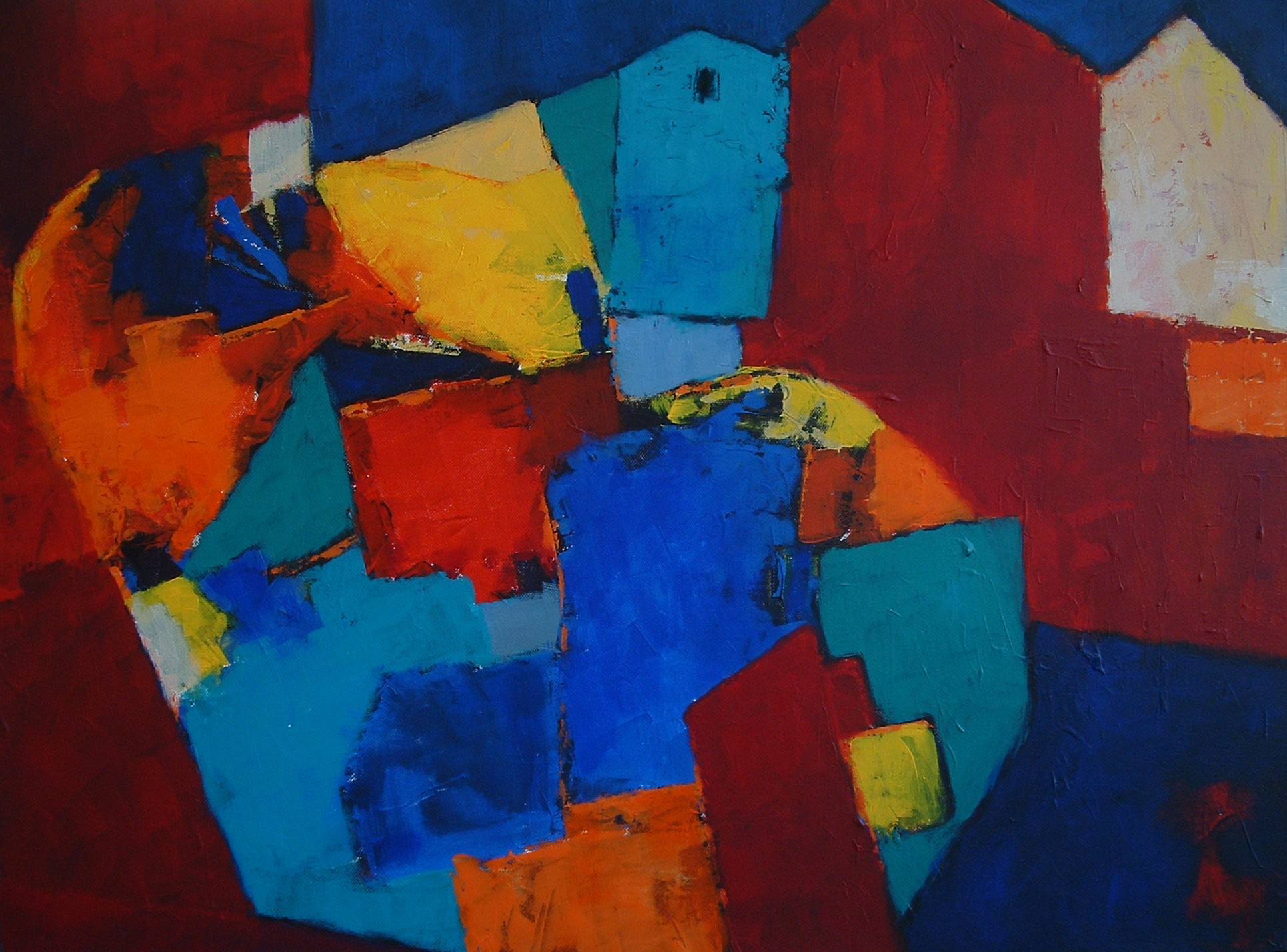 Landschappen en dorpsgezichten zijn mijn belangrijkste onderwerpen.Ik gebruik heldere,warme kleuren en herleid het onderwerp vaak tot bijna abstracte vormen.Ik werk met acryl op doek,diverse formaten.