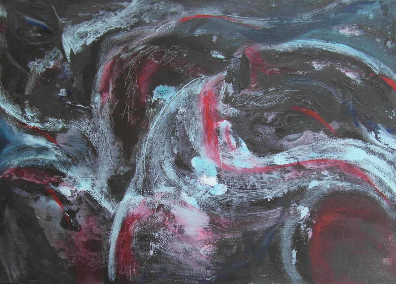 Al schilderend m'n weg volgen... ontmoetingen en samenzijn met zowel mens als dier liggen aan de basis van deze abstracte werken. De 'kriebels' om te gaan schilderen had ik al héél lang. Meermaals heb ik op het punt gestaan om me hier of daar in te schrijven, maar daarvoor was m'n leven te druk op dat moment. Pas in 2006 was het eindelijk zover! Aan de Academie Arendonk ging een droom in vervulling.