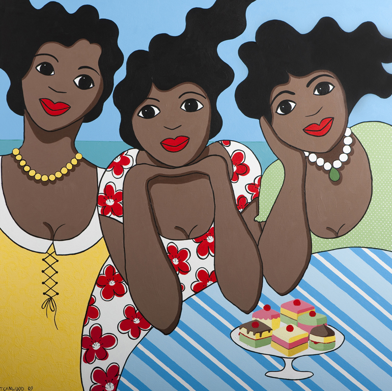 Schilderij Vrouwen Zee Strand Art Kunst Painting Tropisch Women Vriendinnen Friends Girlfriends Beach Curacao Antillen Tropical Sea Caribbean Taartjes Zusjes Zussen Caribisch Sisters Gebakjes Cakes