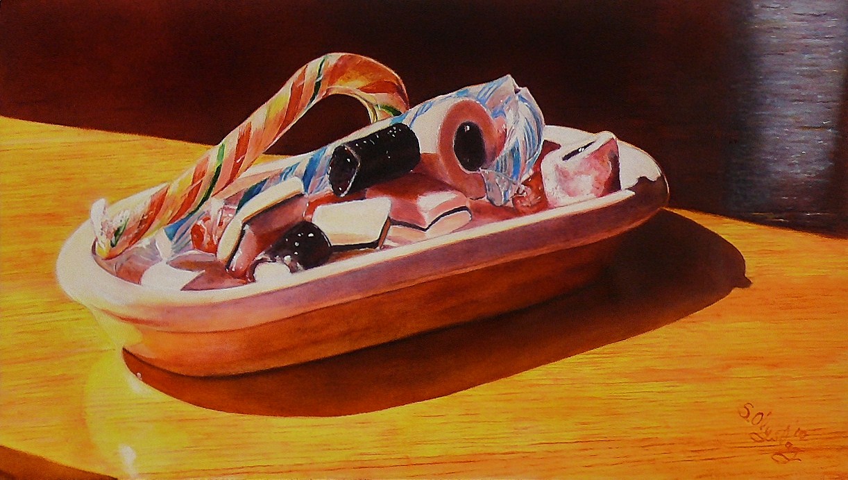 Wit Figuratief Rood Geel Zwart Groen Schaal Realistisch Roze Eten Voedsel Snoep Engels Drop