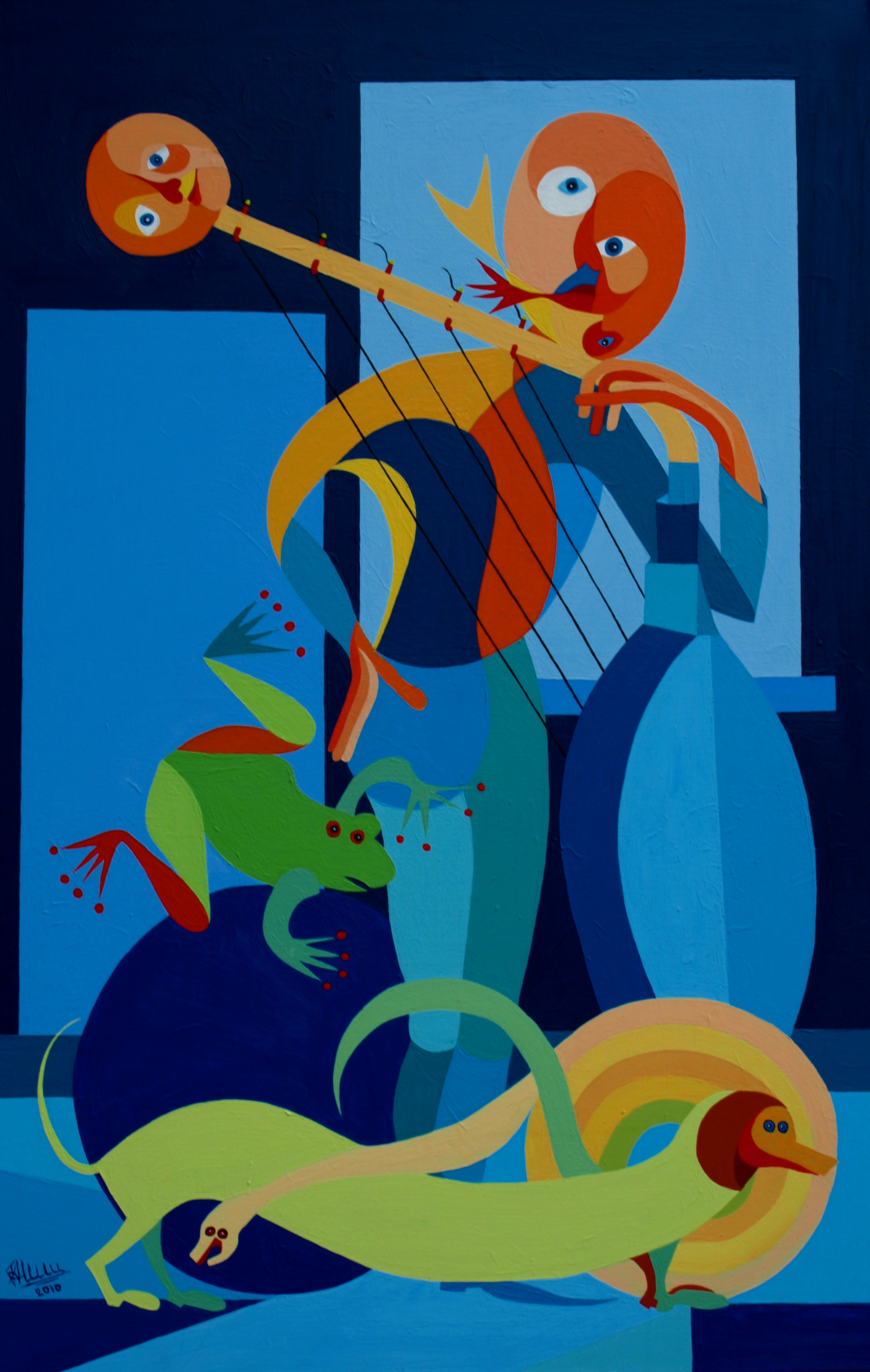 Straatmuziekant Hond Slang Kikker Afrikaanseharp