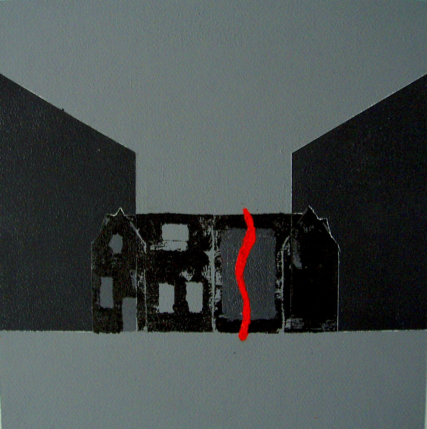Huis Abstract Grijs Zwart Landschap Druktechniek