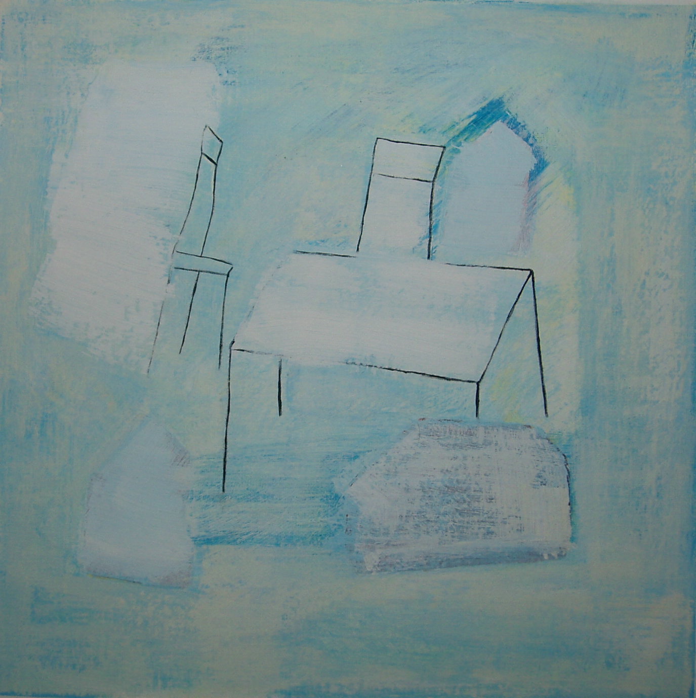 Huis Abstract Blauw Acryl Verhalend Tafel Stoelen Hoogwater