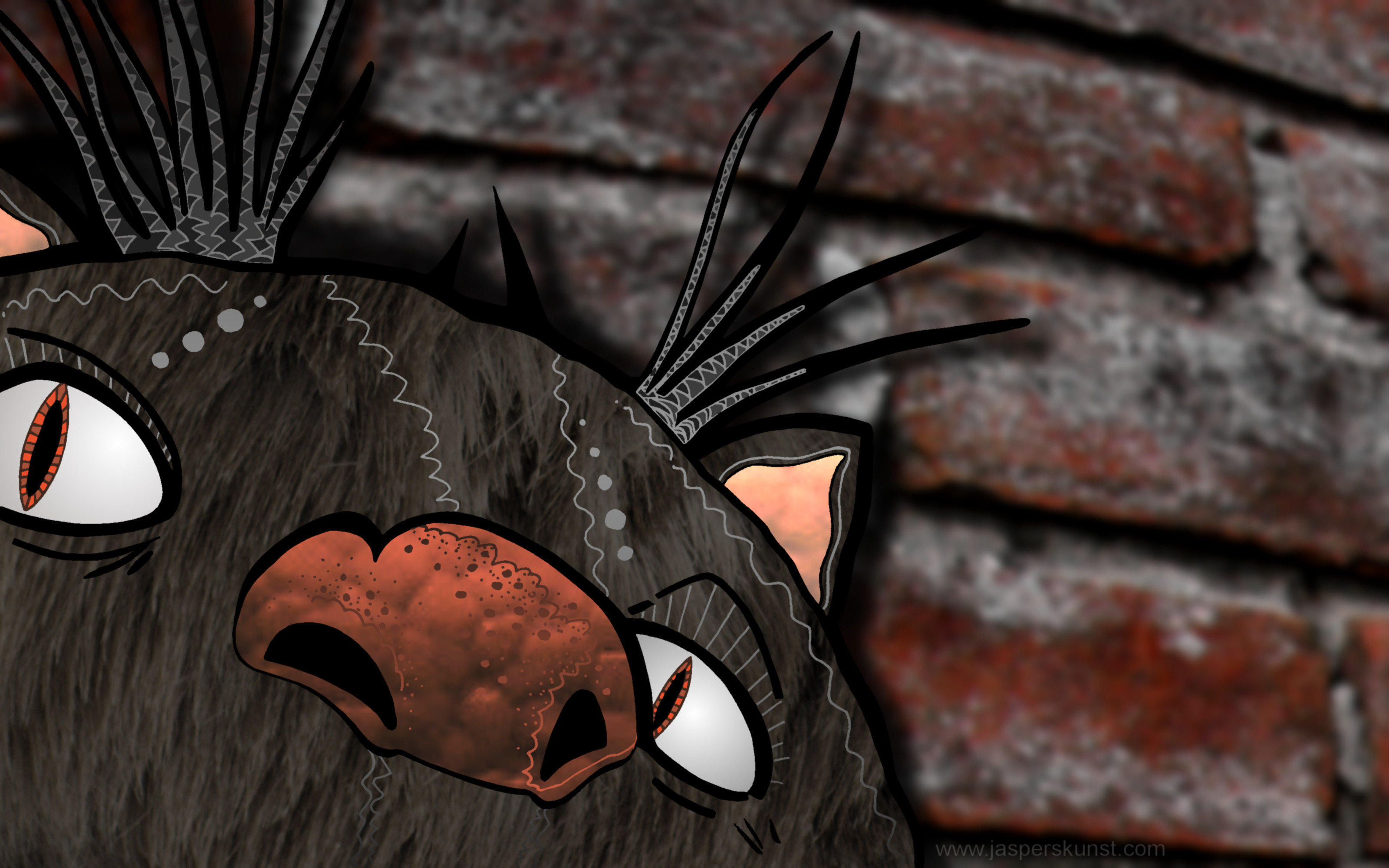 Kat Neus Muur Monster Zen Baksteen Vacht Tao