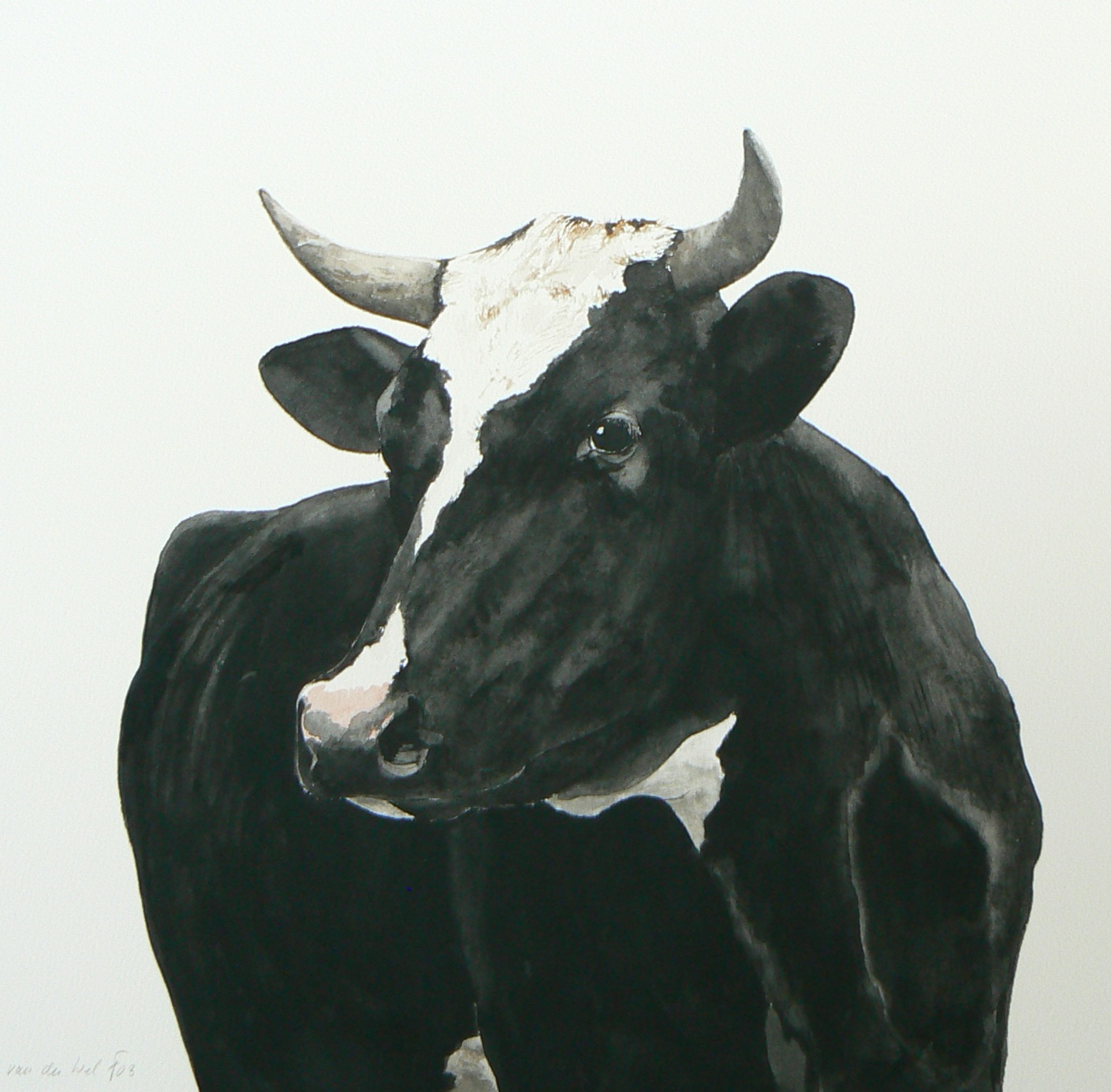 Een portret van een mooie Hollandse koe. Gelukkig heeft de boer de horens laten zitten. Mooie glans op de huid.