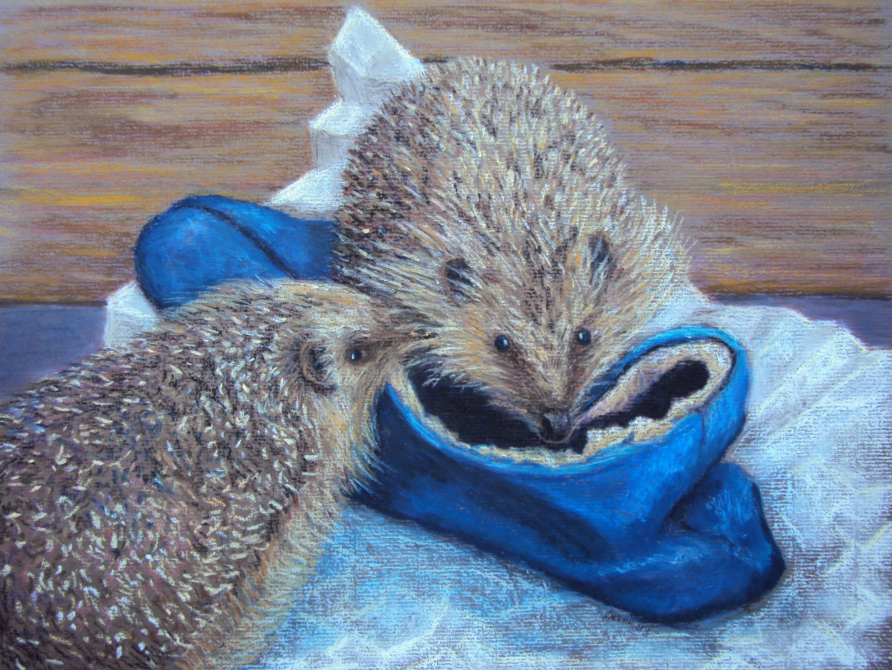 Blauw Bruin Dieren Egel Realistisch Oliepastel Bos Pastel Fenna Moehn Egels Pantoffel