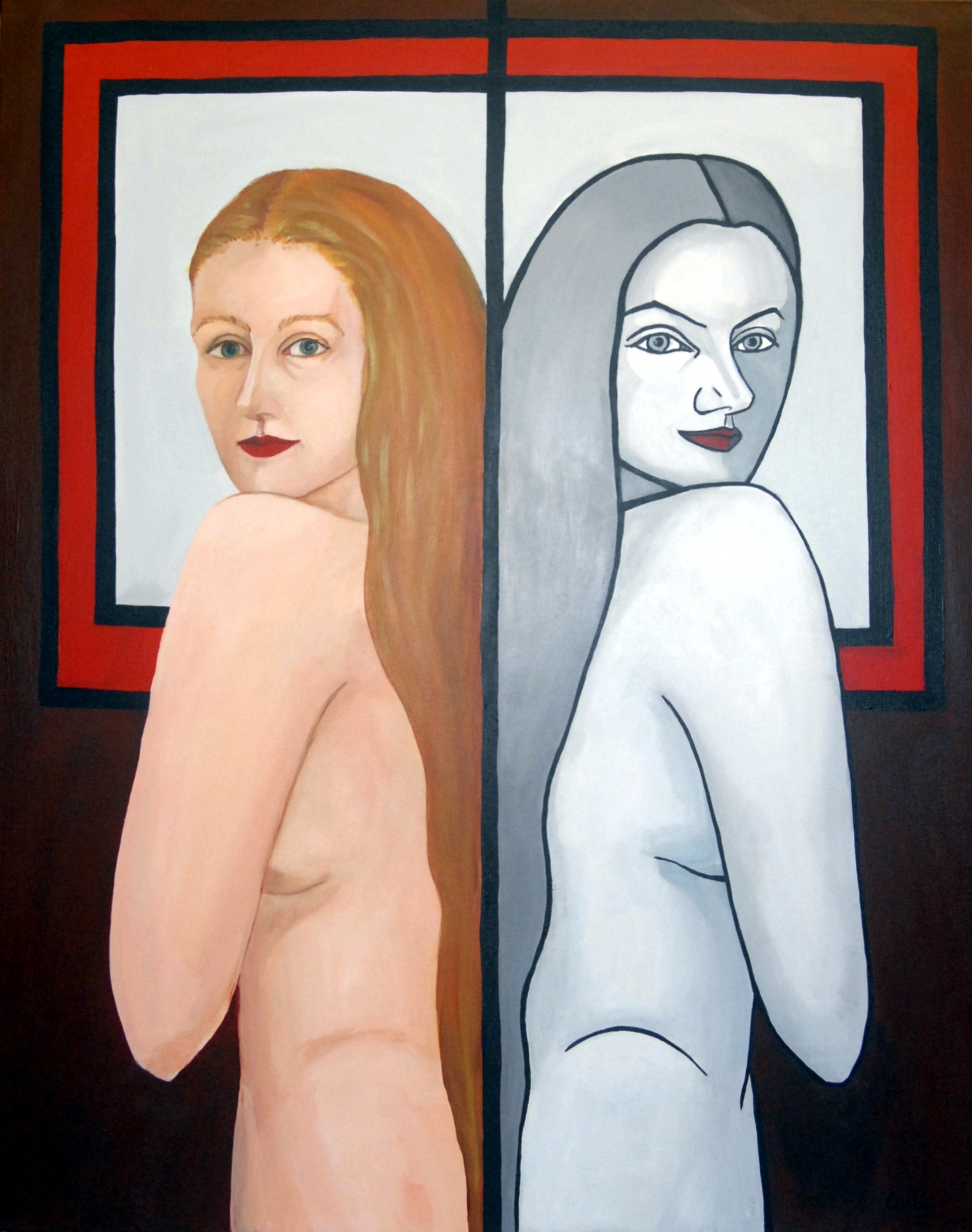 Surreeel Grijs Rood Vrouw Portret Naakt Figuur Personen Raam Persoon
