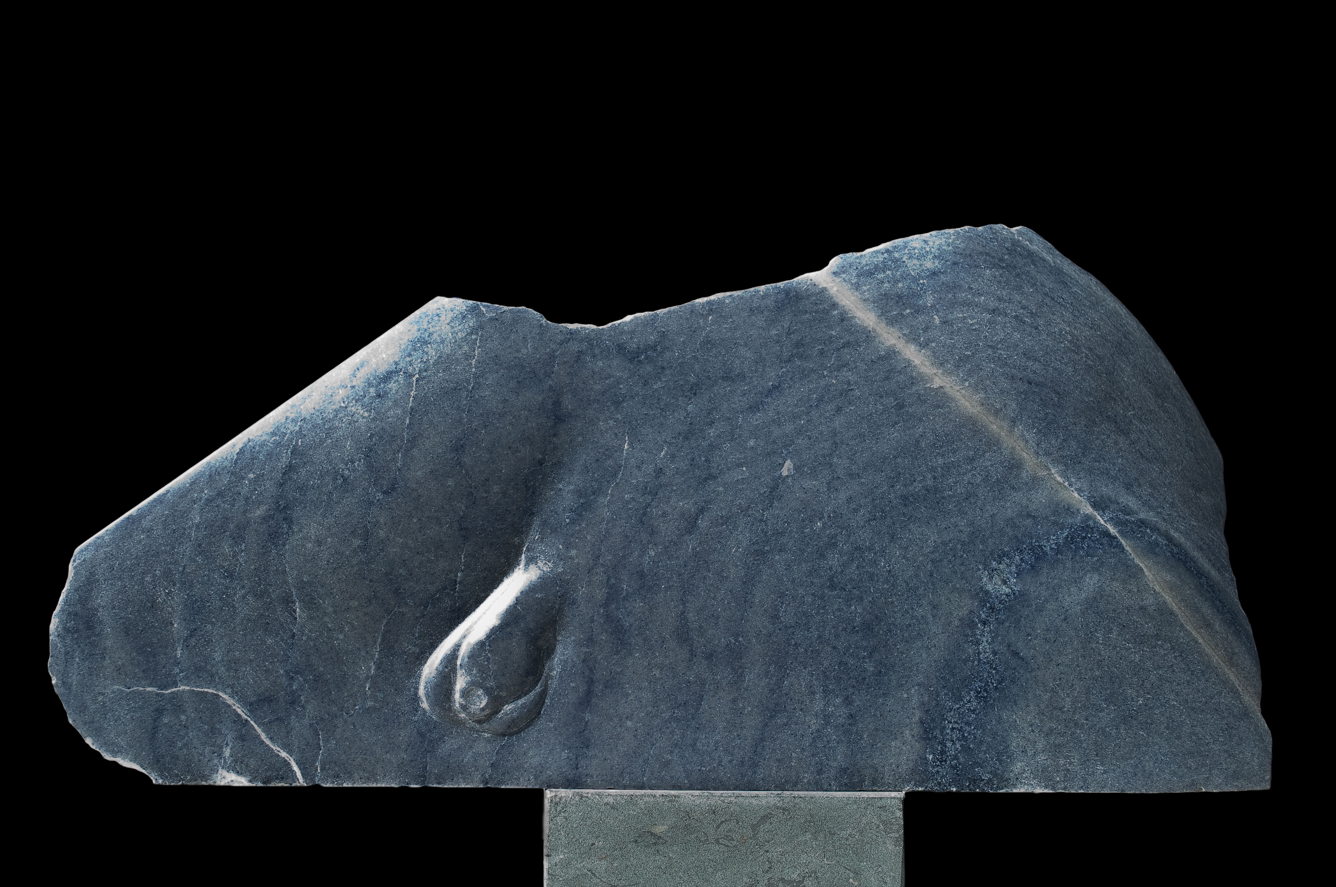 De steen is Azul macaubas, een granietsoort met een lichtblauwe kleur. Begonnen als een enkel blok steen splijtte het vrijwel direct in twee paralelle stukken, die weer zijn samengevoegd tot een enkel beeld met het breukvlak tussen beide helften. De foto laat alleen één helft zien, de andere helft is eveneens een liggende figuur zien van achteren bezien. Beide figuren vormen zo een paar.