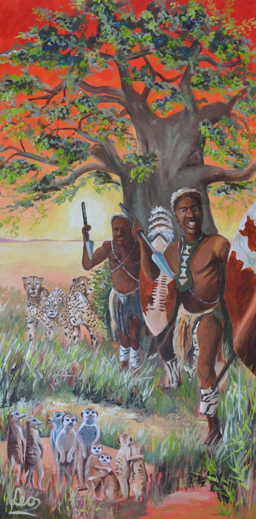 In opdracht van mijn werkgever, kwekerij Ton v.d. Hoorn b.v. Heb ik een tweede Afrika schilderij gemaakt. Dit hangt in de nieuwe vestiging aan de Molenkade in Nieuwveen. De planten die wij kweken komen oorsponkelijk uit Zuid Afrika. Dit is ook de reden van het onderwerp van het schilderij.