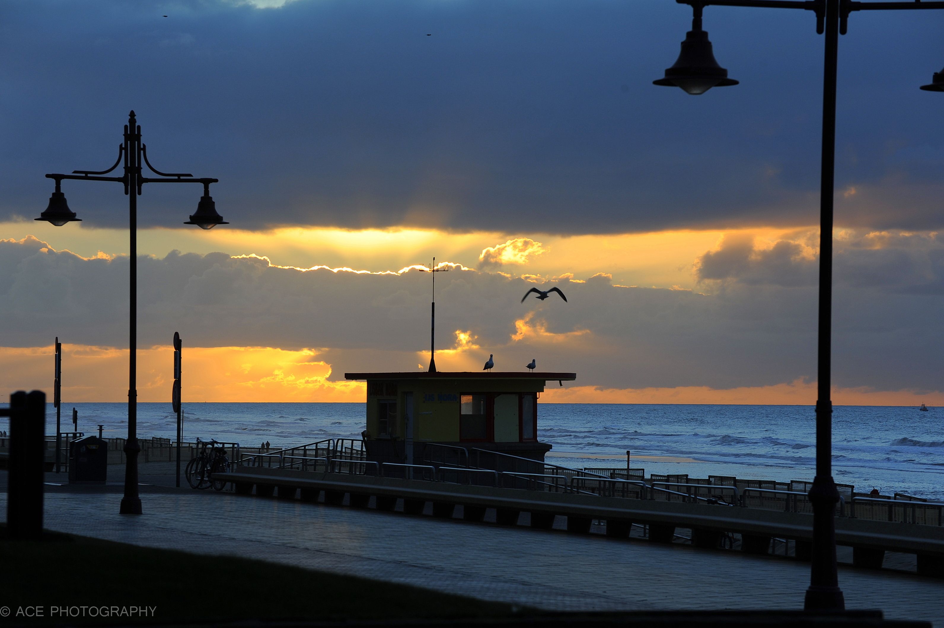 The Sea Zee Beach Strand Birds Vogels Seagulls Zeemeeuwen Zonsondergang Sunset Building Gebouw Blue Blauw Oranje Orange