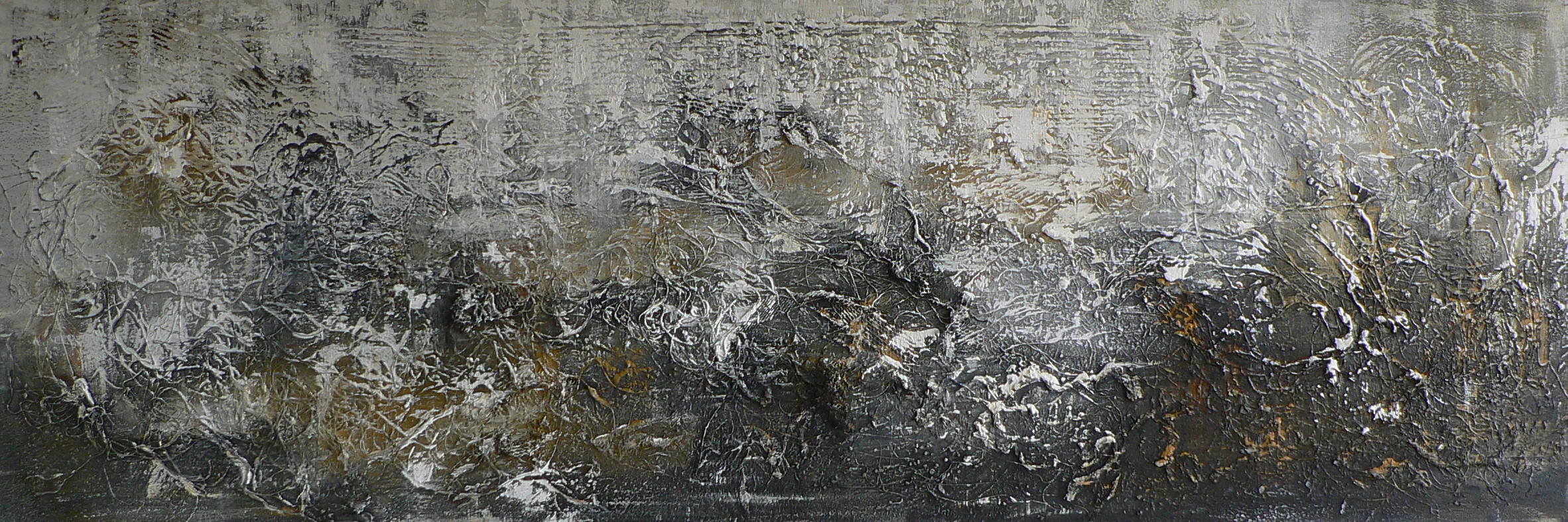 Abstract werk in acryl gelaagd in gemengde techniek.