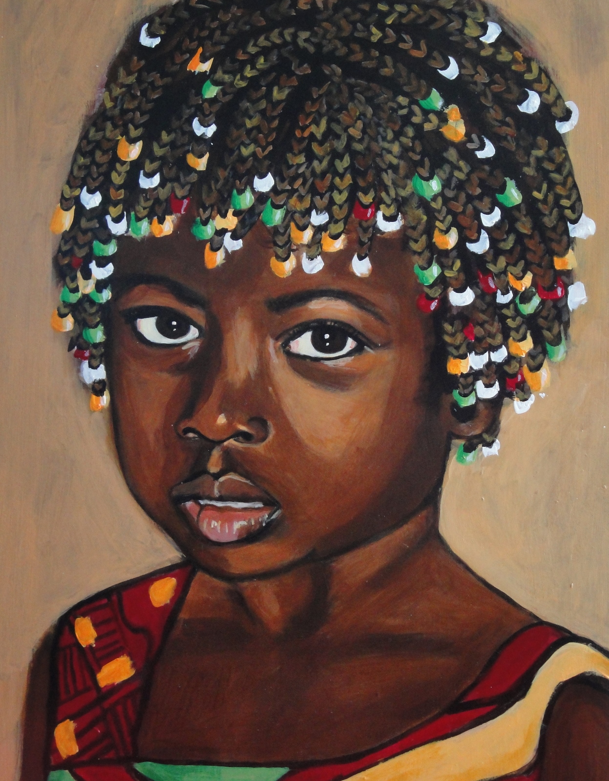 Meisje Acryl Portret Bruin Donker Kraaltjes