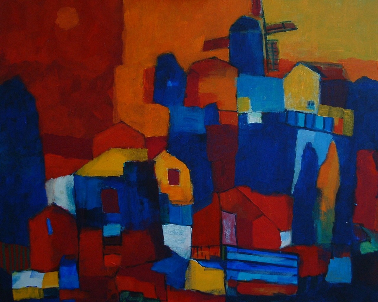 Landschappen en dorpsgezichten zijn mijn belangrijkste onderwerpen.Ik gebruik heldere,warme kleuren en herleid het onderwerp vaak tot bijna abstracte vormen.Ik werk met acryl op doek,diverse formaten.