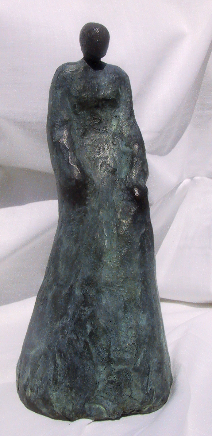 dame met lange rok, groen gepatineerd