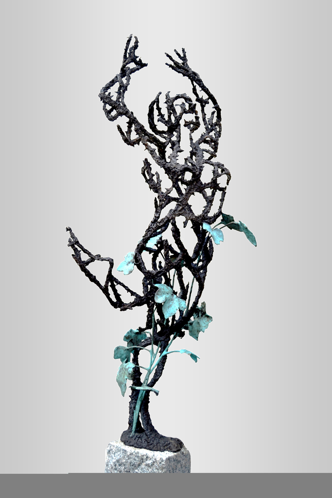 Betekenisvolle sculpturen in brons, steen of hout met een eigen identiteit, een weerspiegeling van het dynamische proces, schoonheid en strijd. Groot staand werk of kleiner voor tuin of interieur.