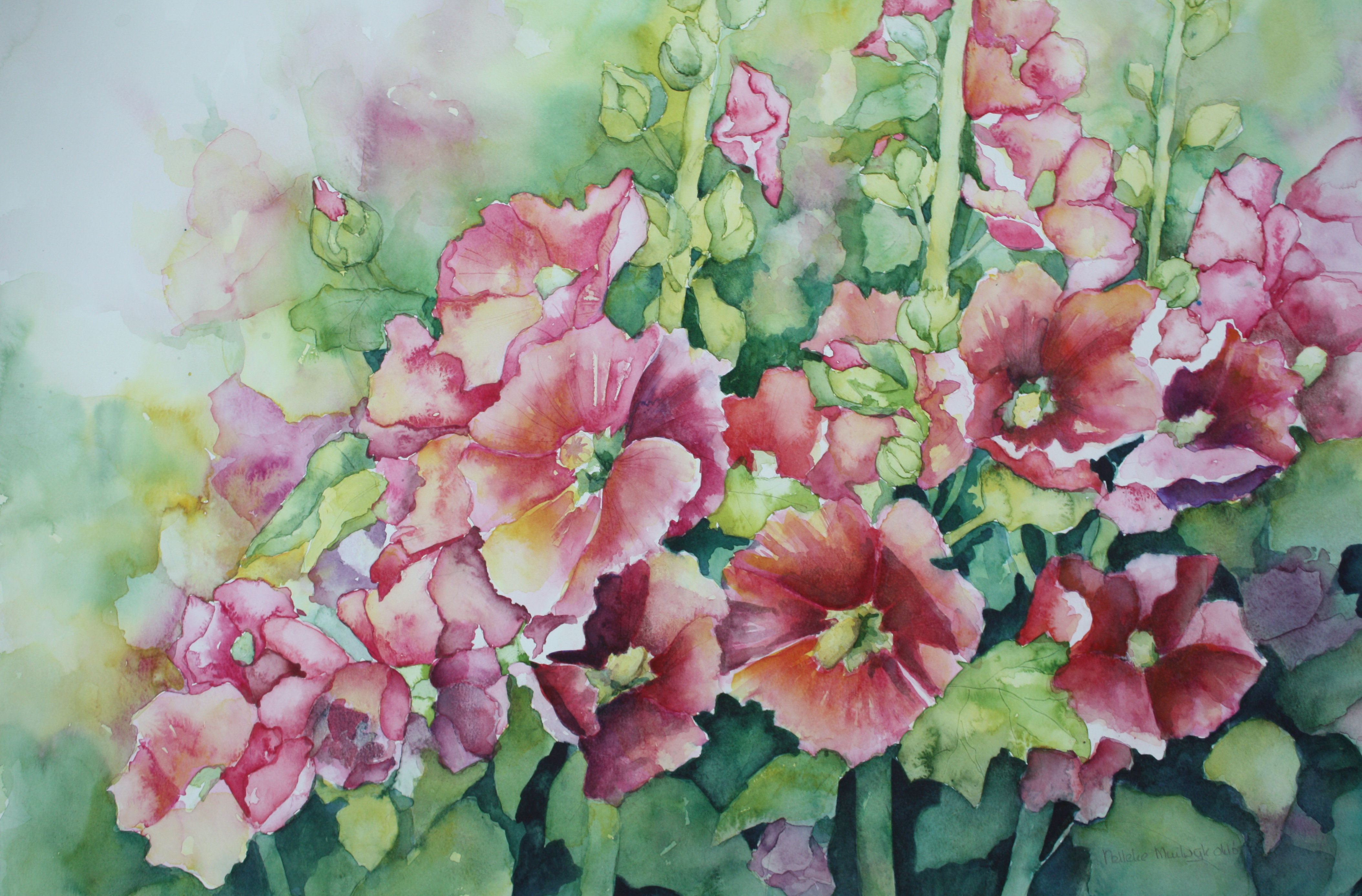 Bloemen Stokroos Aquarel Flowers Holyhock Watercolours