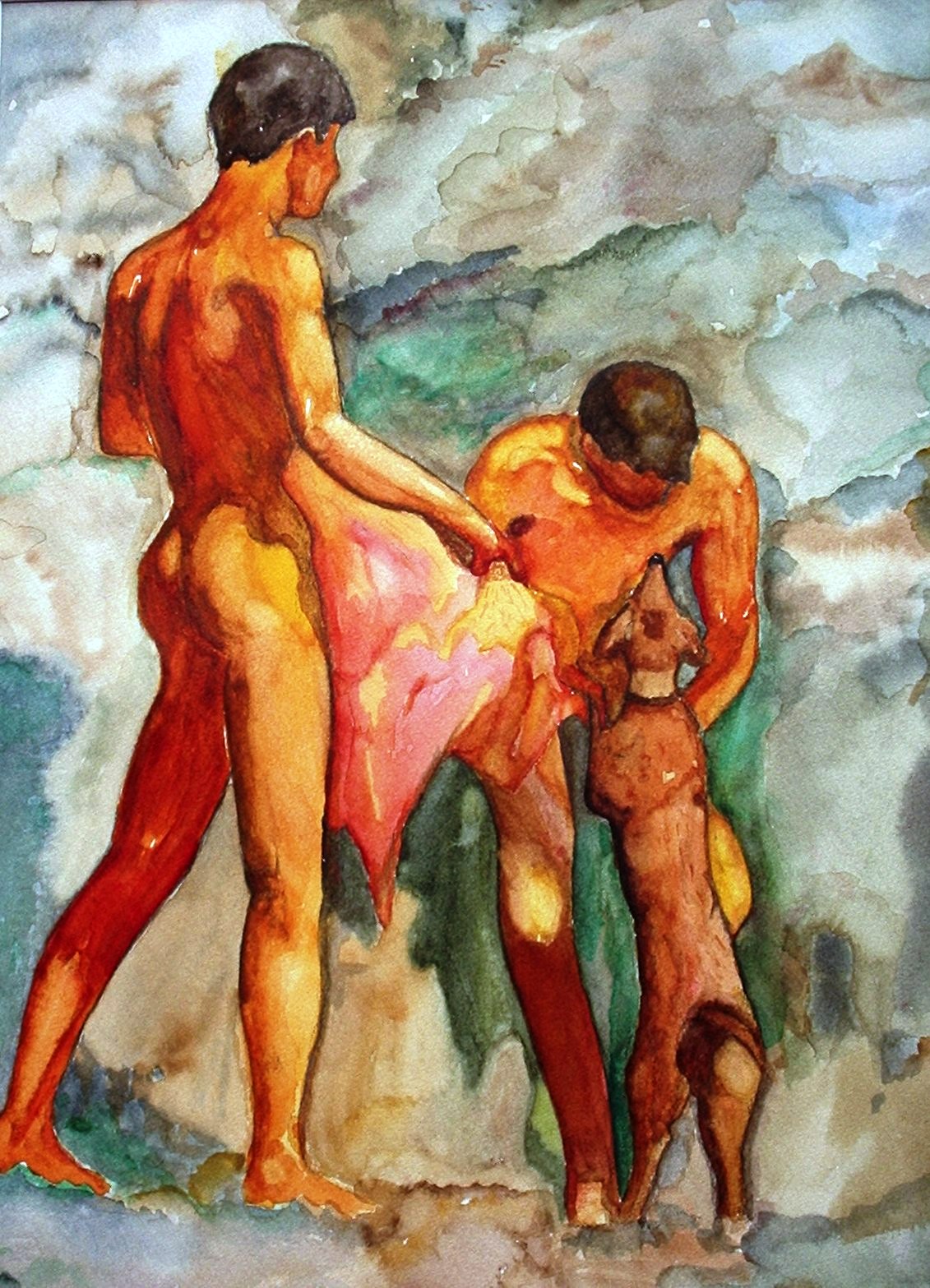 Naakt Nude Aquarel Hond Dog Vrijheid Mannen Men