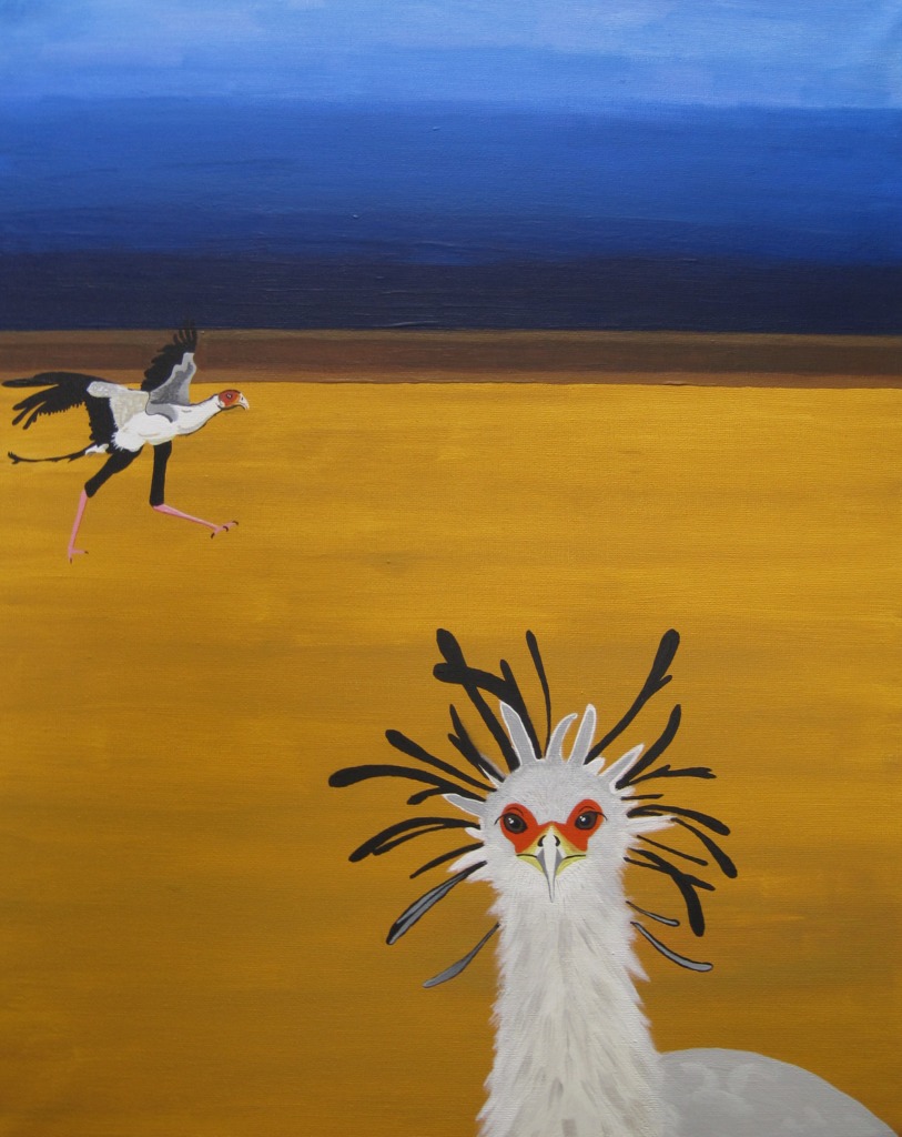 Twee Africa Afrika Two Birds Vogels Look Vlakte Surprised Secretaris Secretary