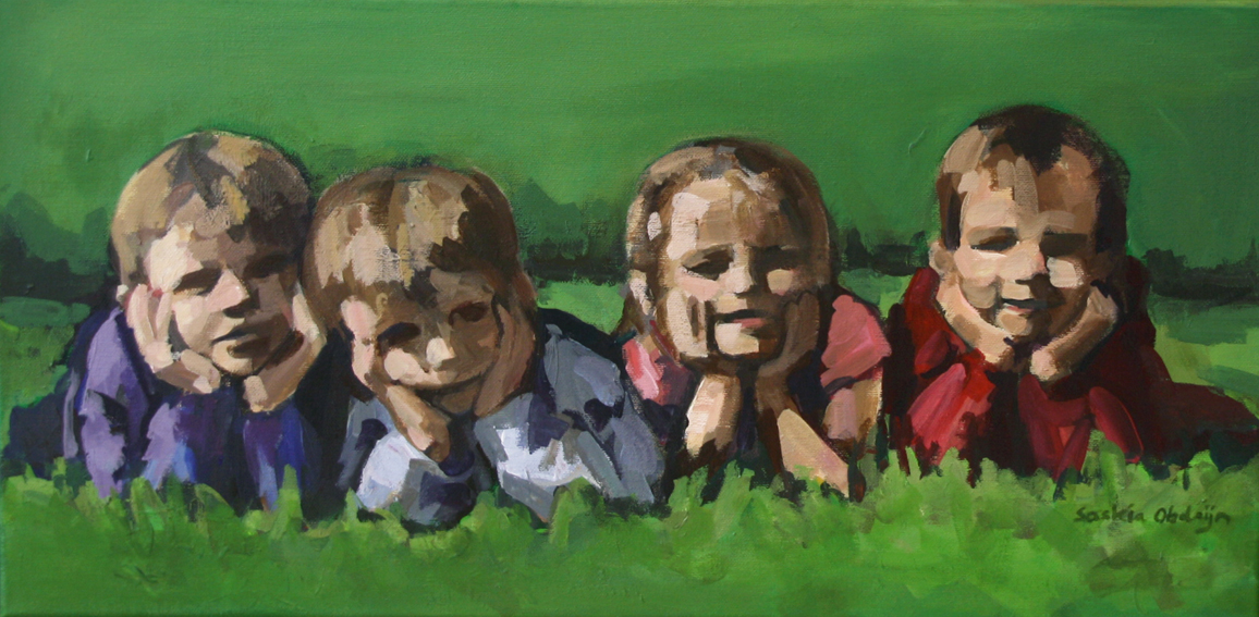 Portret Natuur Gras Kinderen Portretschilderij Portretopdracht Platteland