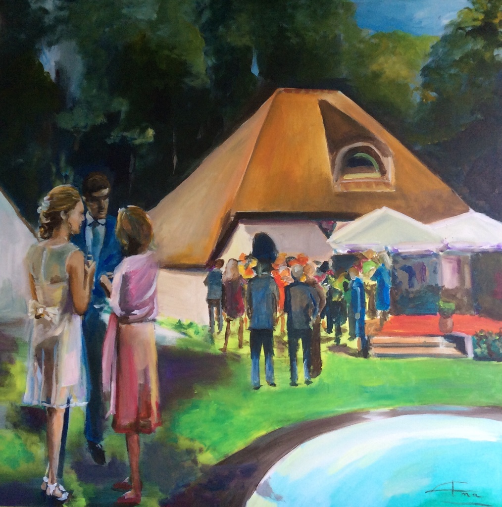 Schilderij Groen Feest Tuin Doek Bruid Bruidegom Paint Bruiloft Live