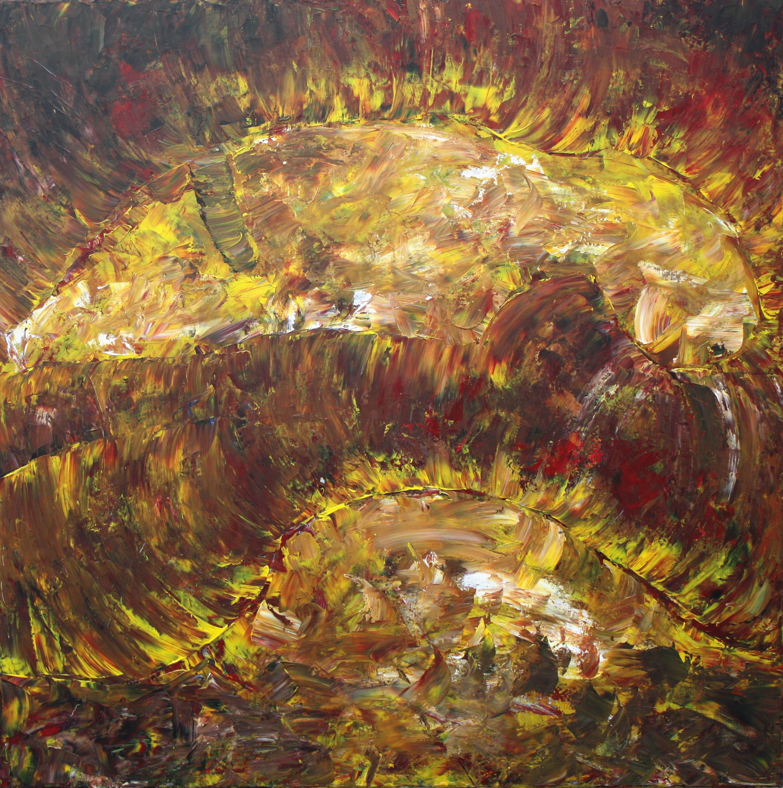 Abstract Geel Acryl Yellow Bruin Big Brown Spatel Bang Oerknal Acryllic Visualisatie