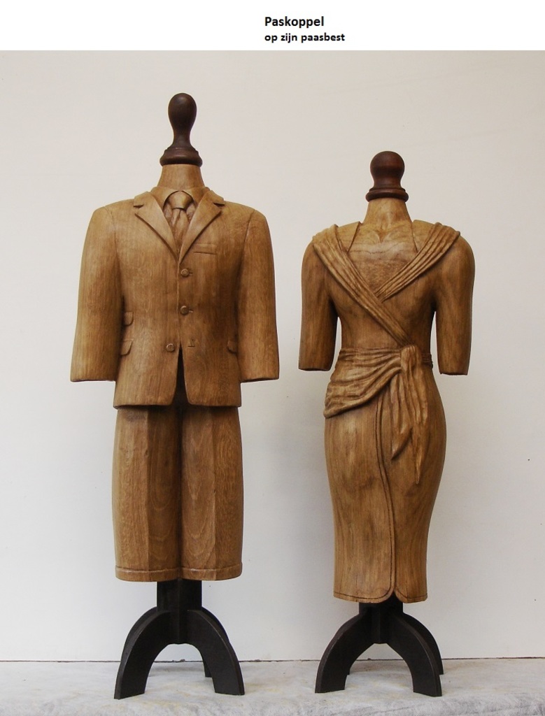 Houten beelden van Djef Blok, surrealistische en vol ironie, soms mild, soms bitter of lieftallig, maar altijd betekenisvol.