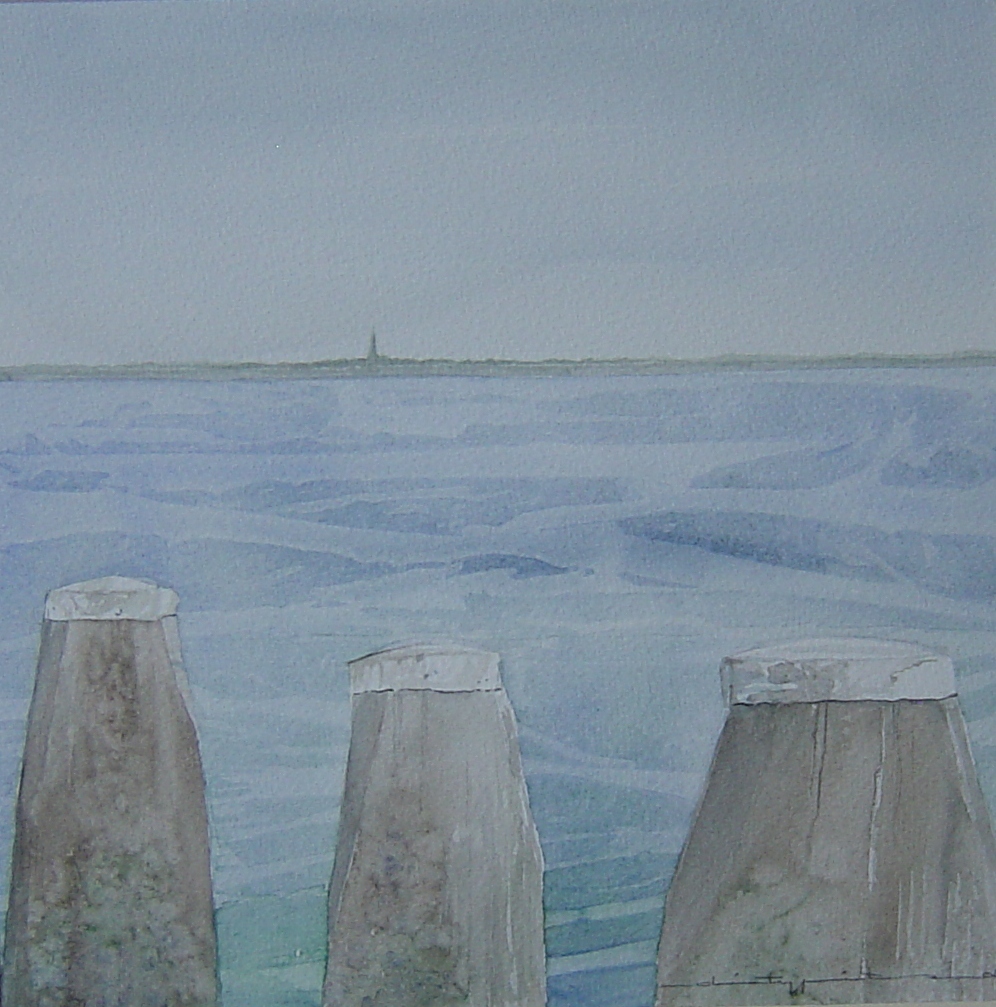 Aquarel. Zicht op Holwerd.