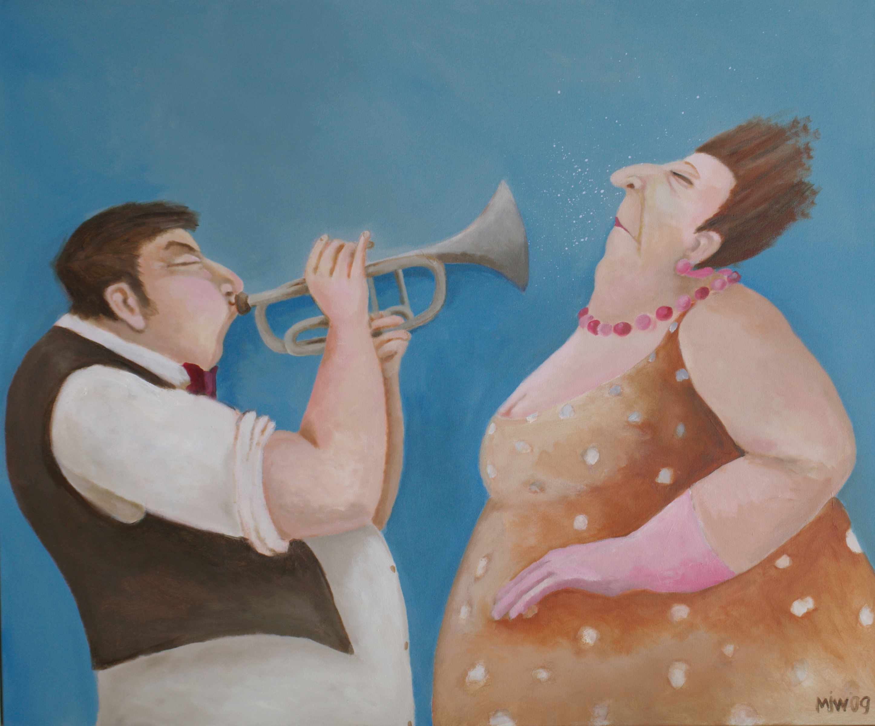 Vrouw Man Vrolijk Trompet Spetters