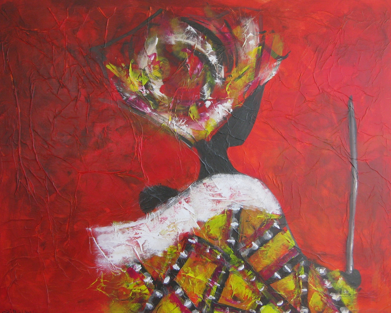Vrouwen Rood Kleurrijk Afrikaans Schilderij Painting Expositie Exhibition Colorfull Kunstkopen Ediart Buyart Figuratief Schilderkunst Art