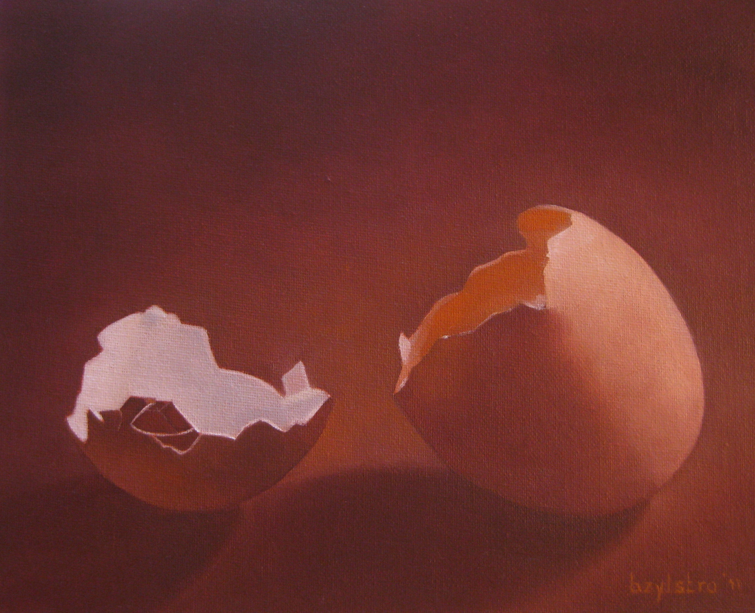 Een lege eierdop, geschilderd op een regenachtige dag in juli 2011
