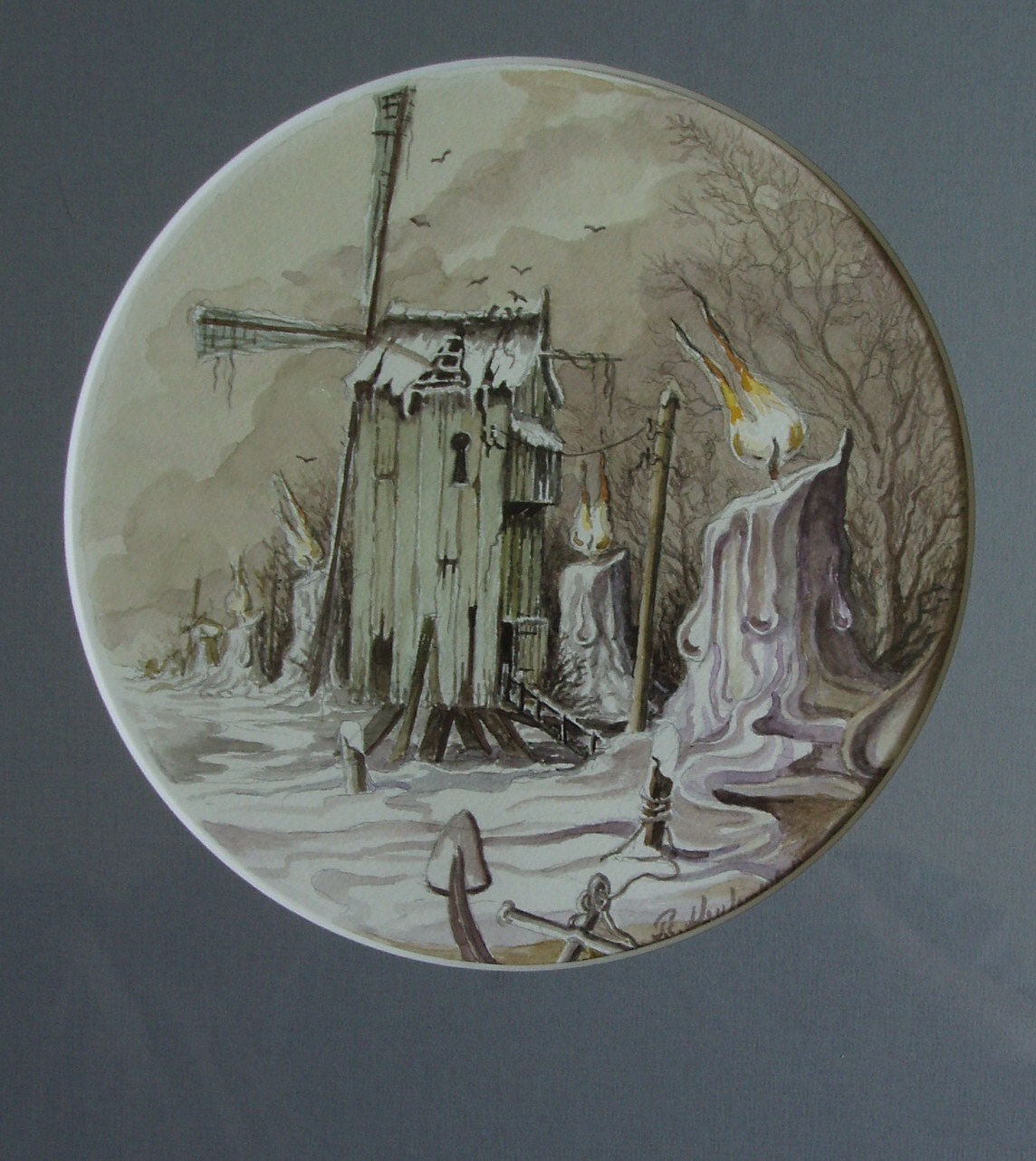 Landschap Romantiek Aquarel Winter Realisme Fantasie Anker Molen Kaars