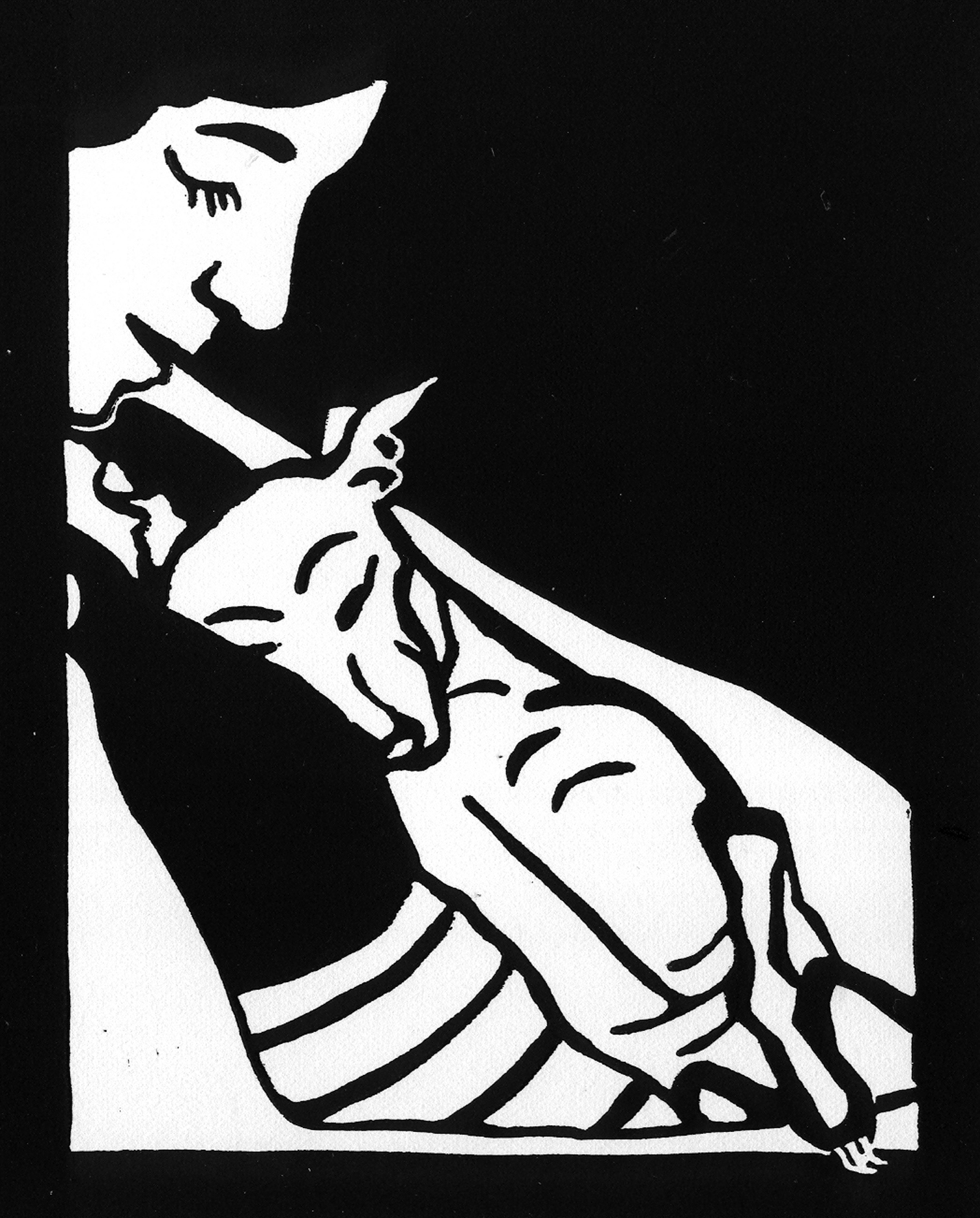 Vrouw Realistisch Italian Italiaans Grafiek Hond Black Dog Print Windhond Greyhound Realistic Linosnede Linocut Zwart-wit