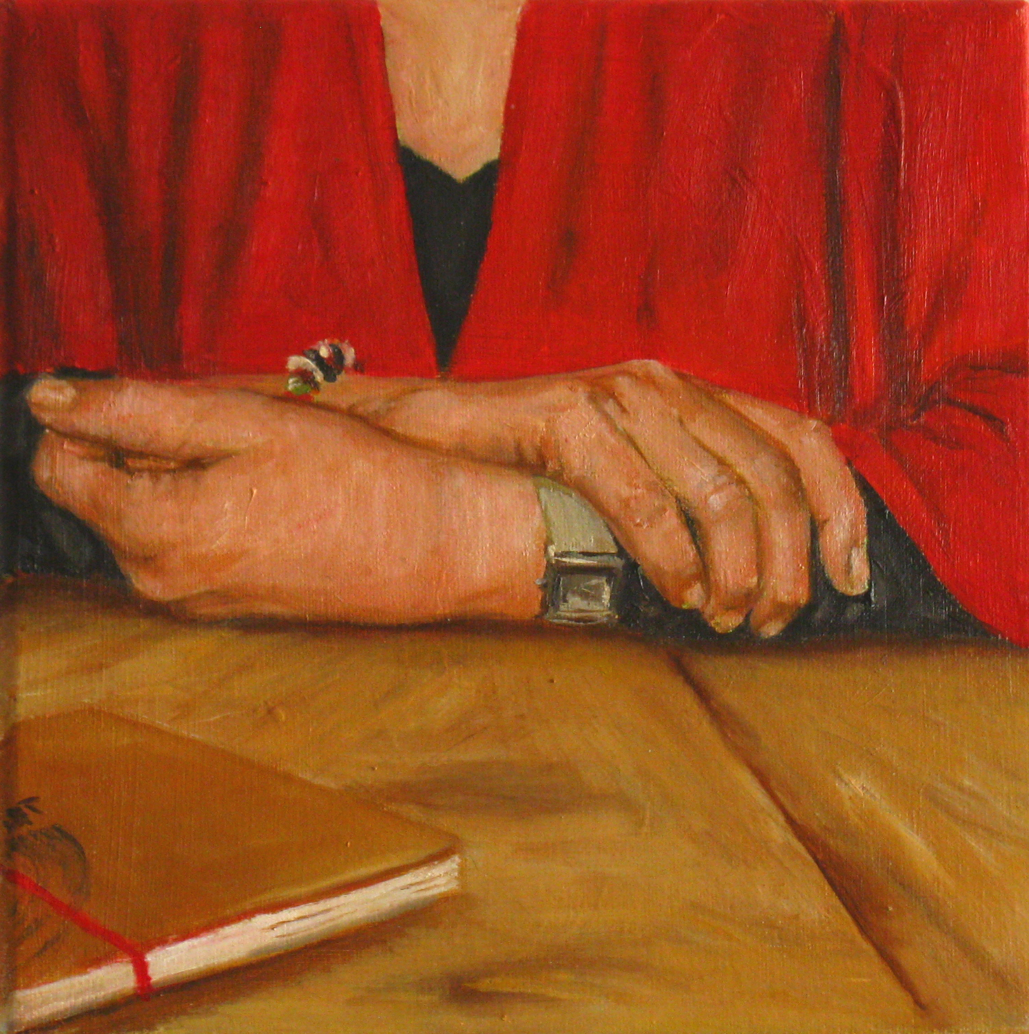 Handen Vrouw Rood Boek Op Tafel