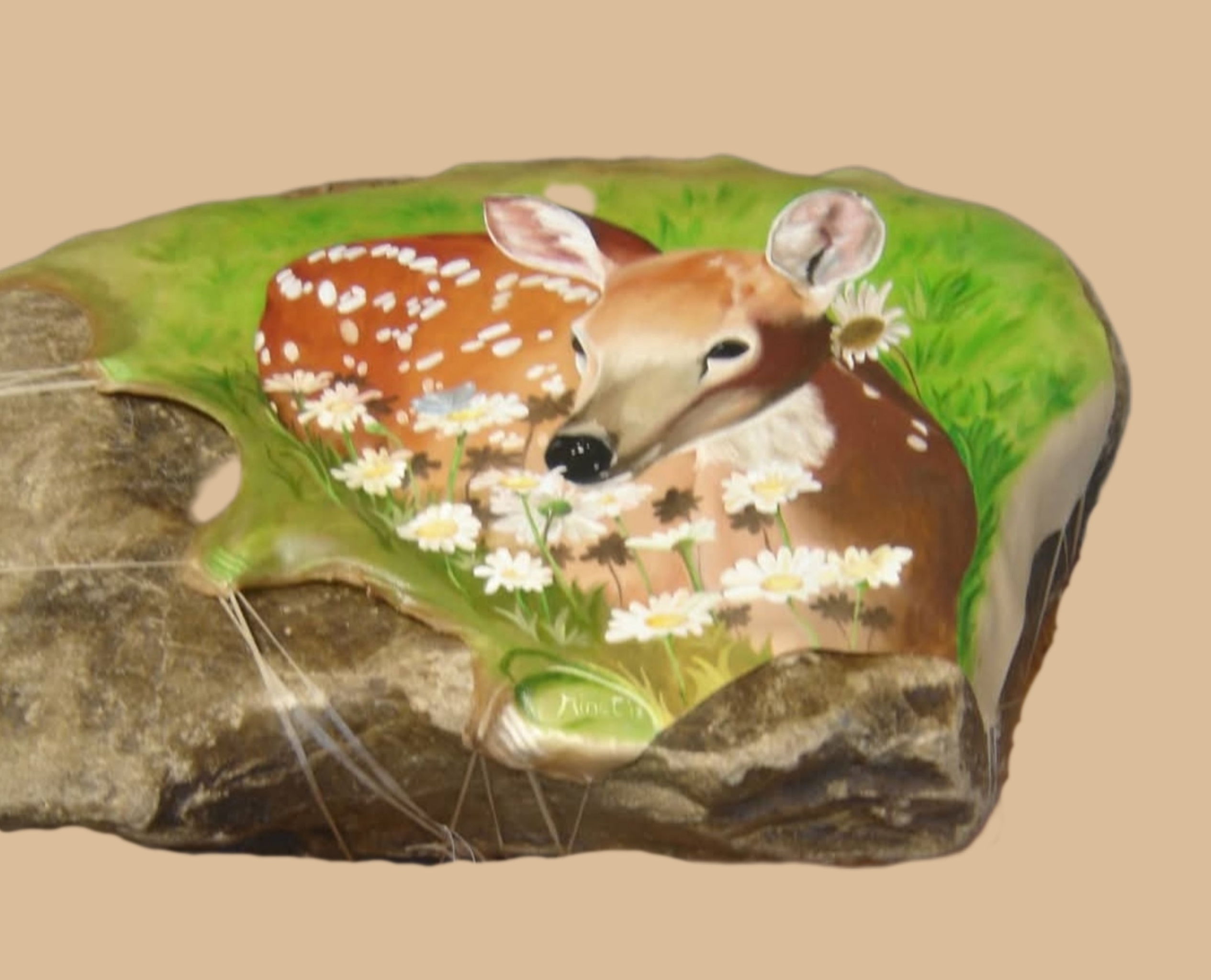 Portret Dieren Steen Realistisch Olieverf Beelden Stenen Fijnschilderen Leer Hertje Beschilderde Rawhide