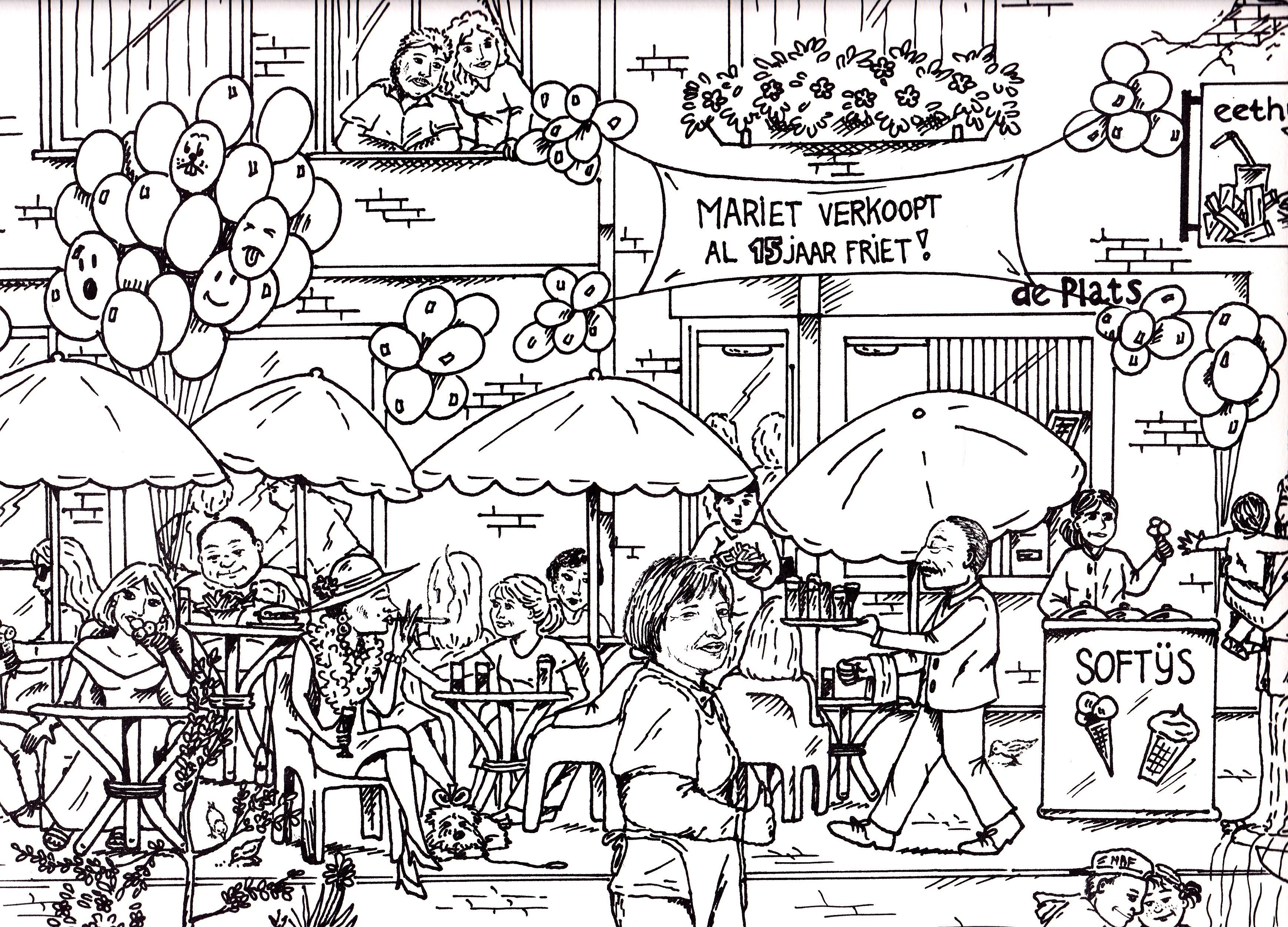 Kleurplaat ontworpen voor een kleurwedstijd, friture "De Plats" (15 jarig bestaan)