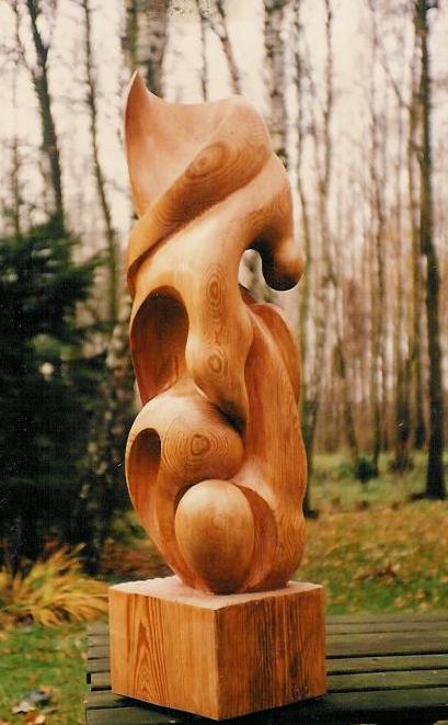 Houten beelden van Djef Blok, surrealistische en vol ironie, soms mild, soms bitter of lieftallig, maar altijd betekenisvol.