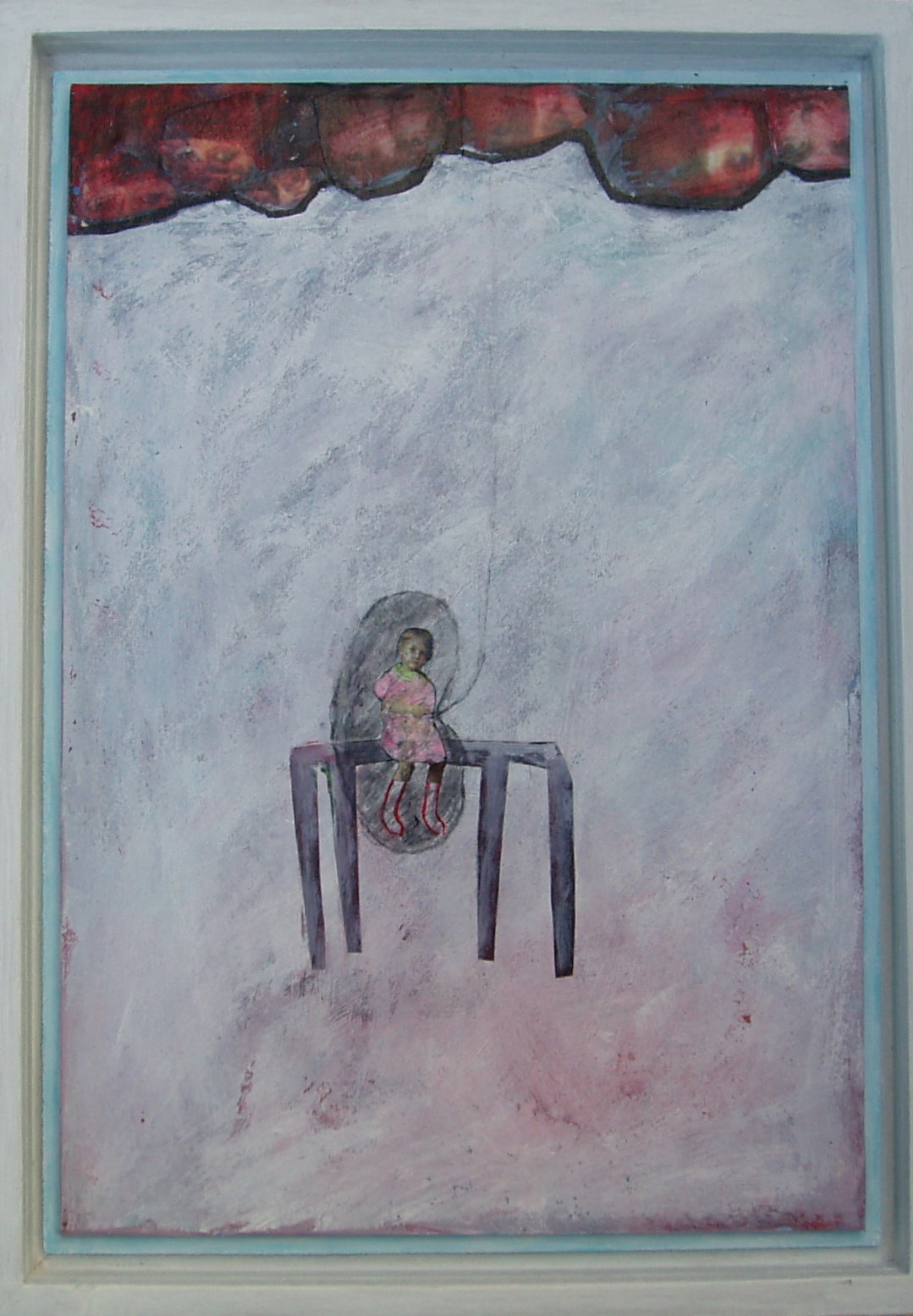 dagboeknotitie: papier verlijmd op 2 x mdf-platen, ingelijst in houten bakje