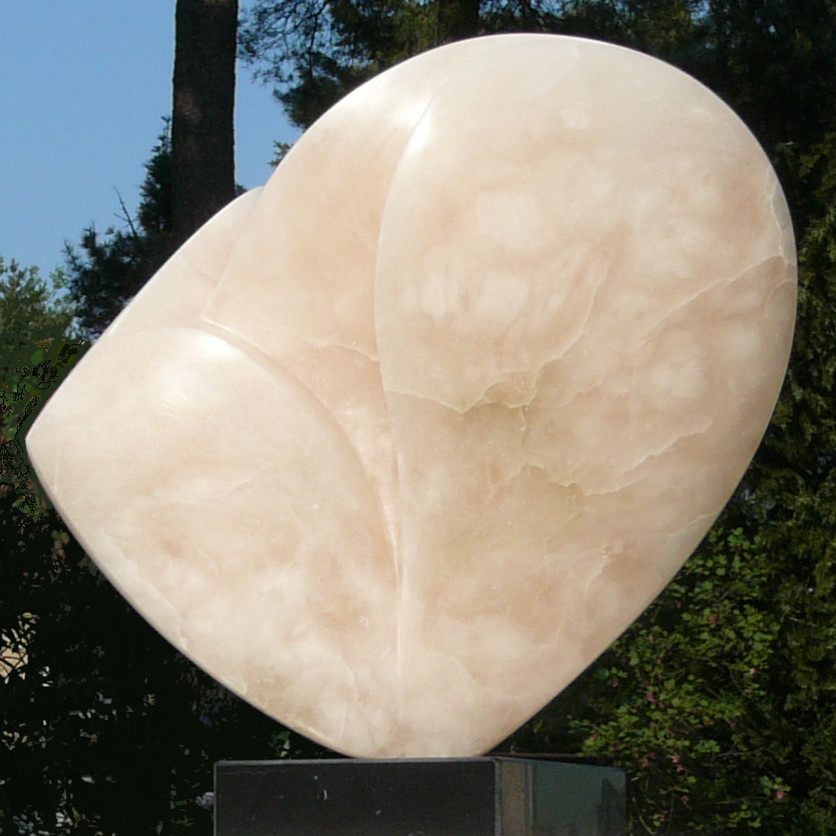 Een ontluikende liefde? Een ontluikende dag? Een ontluikend idee? Een ontluikend beeld? in roze albast met sokkel