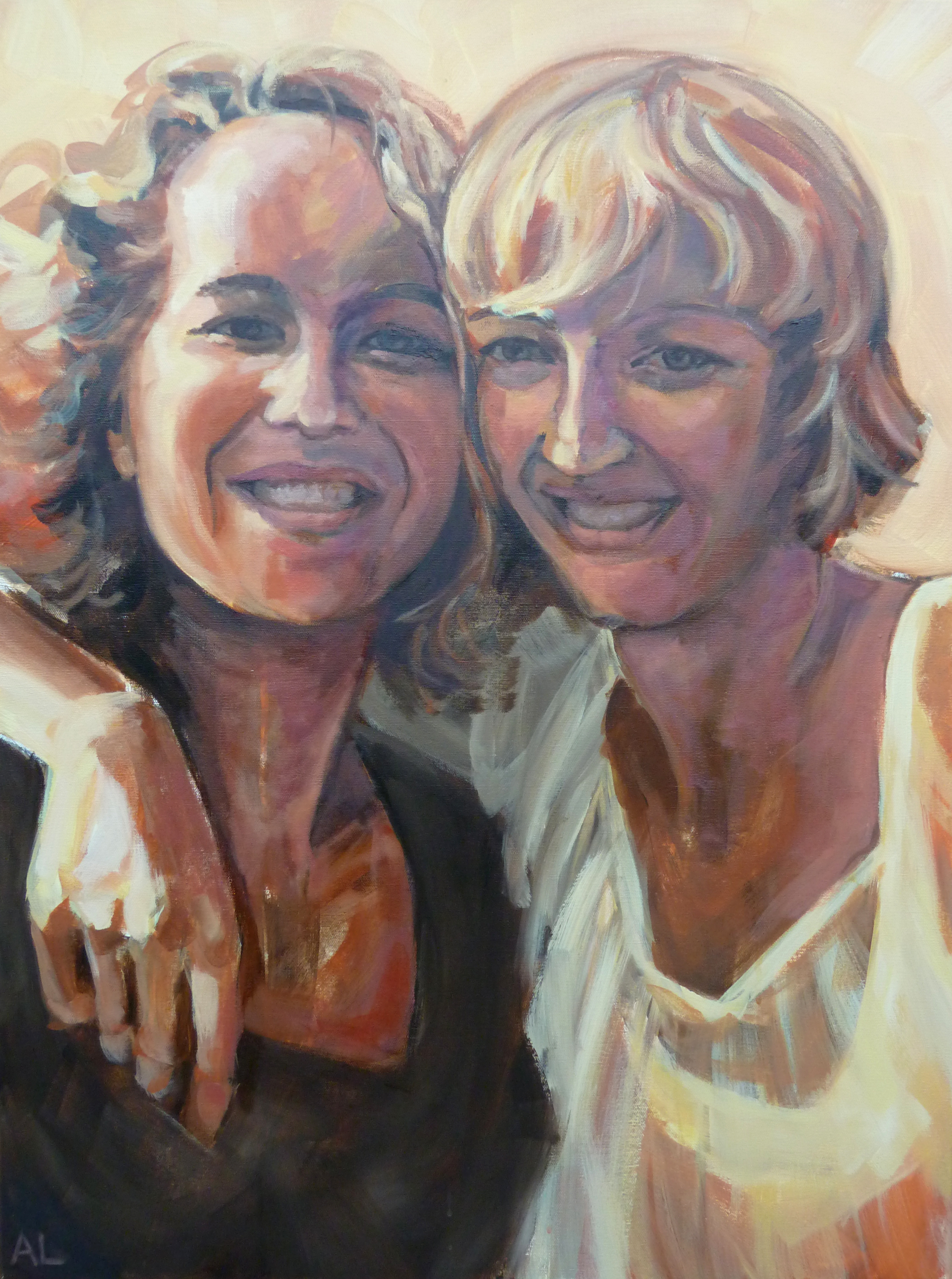 Portret in Opdracht. Dubbel Portret van Nicky en Rowy geschilderd in gemengde techniek met Acrylverf en Olieverf.
