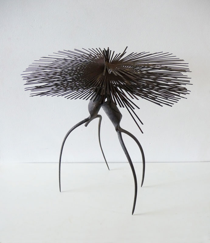 Iets in de buitenwereld intrigeert mij en door deze impressie uit te werken wordt zij blijvend deel van mijn binnenwereld. Laag na laag bouw ik aan de uiteindelijke vorm. Tijdens het werken komt er een stroom van associaties op gang. Het is een constant zoeken naar evenwicht tussen de verf en de andere materialen.