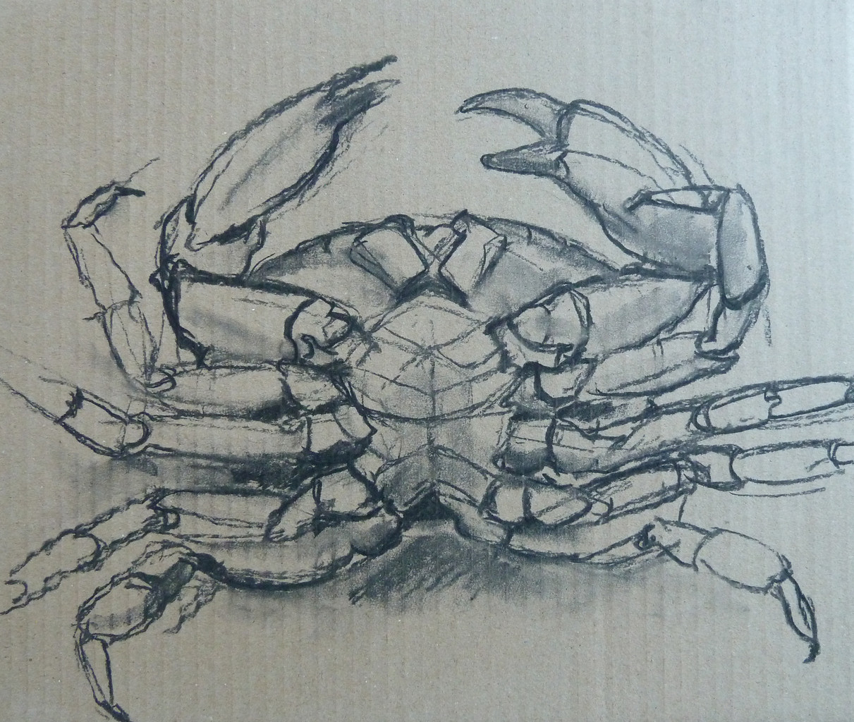 Noordzeekrab, tekening in houtskool.