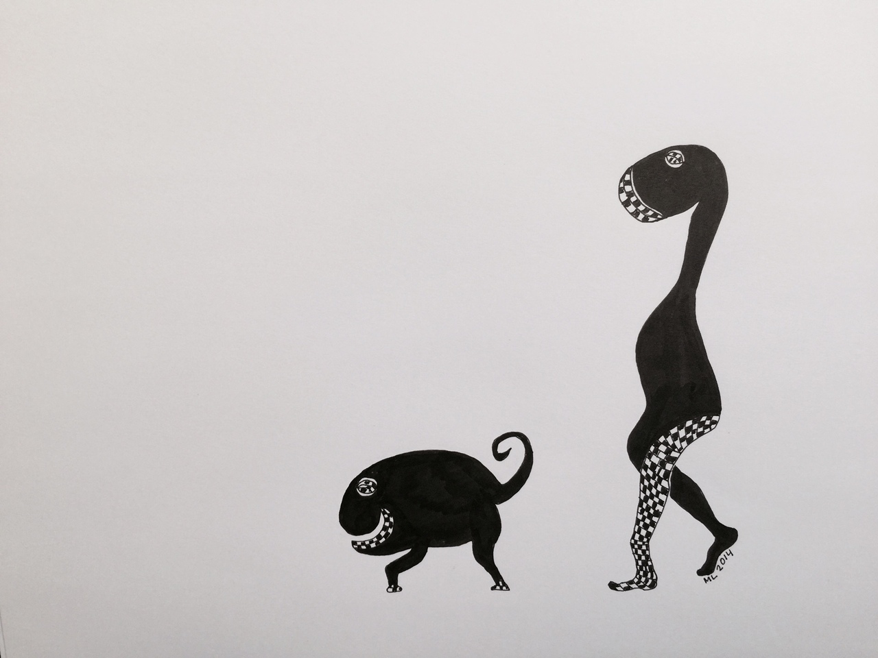 Figuratief Zwart Papier Dier Mens Inkt Grappig