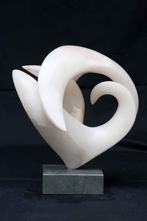 Abstract beeld van wit albast, met groene sokkel