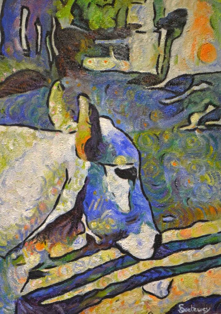 Greta Soetewey schildert haar impressie. Vooral dieren en mensen met hun tradities staan centraal op de foto's waarop ze haar schilderwerken baseert.