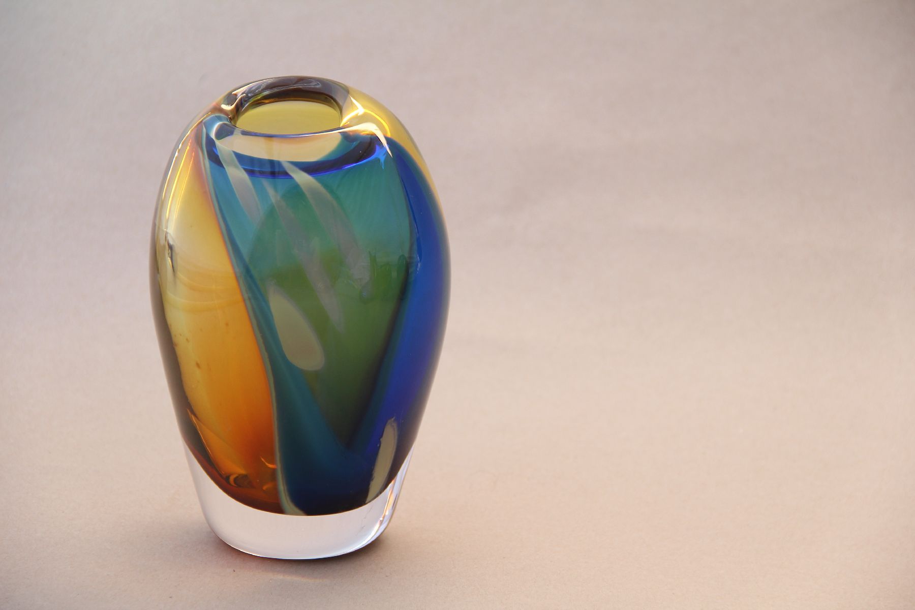 Er moest wat veranderen. Daarom organiseerde ik eind 2009 voor mijzelf een sabbatsverlof waarin kunst en ambacht centraal stonden. Ik vond meer balans en ben gaan glasblazen in diverse workshops in studios in Leerdam, Amsterdam, Lommel (B) en Novy Bor (CZ). Glasblazen is een zoektocht geworden. Glas is zo’n mooi materiaal met oneindige verrassende mogelijkheden, dat het elke keer weer een uitdaging is om spelend met vorm en kleur een mooi werkstuk te blazen.