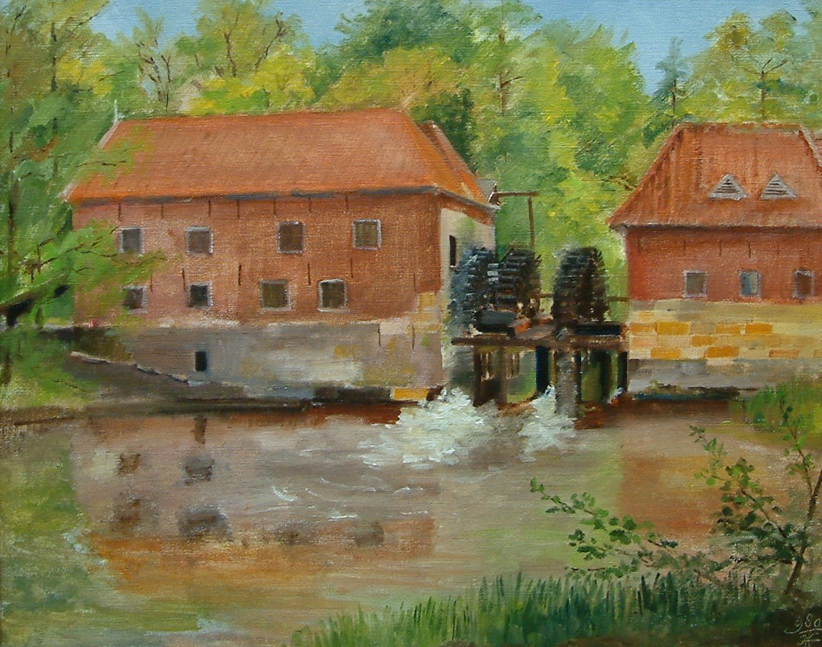 Watermolen Singrave in olieverf op linnen.